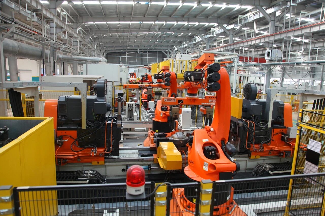 在济南车桥公司桥壳加工二部 香蕉91视频APP,89台工业机器人在冲压桥壳智能加工线高效运转,驱动桥5条全速运转的装配线上,一根根桥总成有序下线……进入12月份,济南车桥公司正以决战决胜的信心,开足马力保生产,保质量,保发交,全力打好年度“收官战”。